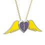 Ametist 18 ayar beyaz altın kolye (Sarı mineli, 40 cm gümüş rolo zincir)