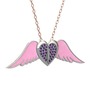 Ametist 8 ayar beyaz altın kolye (Pembe mineli, 40 cm rose altın rolo zincir)
