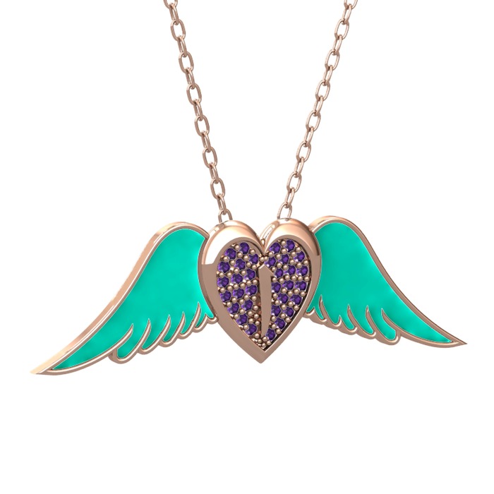 Ametist 8 ayar rose altın kolye (Turkuaz mineli, 40 cm rose altın rolo zincir)