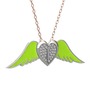 Beyaz zirkon 14 ayar beyaz altın kolye (Neon yeşil mineli, 40 cm rose altın rolo zincir)
