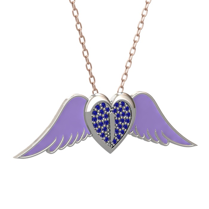 Lab safir 14 ayar beyaz altın kolye (Menekşe mineli, 40 cm rose altın rolo zincir)
