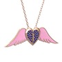 Lab safir 925 ayar rose altın kaplama gümüş kolye (Pembe mineli, 40 cm rose altın rolo zincir)
