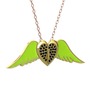 Siyah zirkon 18 ayar altın kolye (Neon yeşil mineli, 40 cm rose altın rolo zincir)