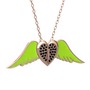 Siyah zirkon 8 ayar rose altın kolye (Neon yeşil mineli, 40 cm rose altın rolo zincir)