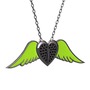 Siyah zirkon 925 ayar siyah rodyum kaplama gümüş kolye (Neon yeşil mineli, 40 cm gümüş rolo zincir)