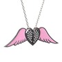 Swarovski 925 ayar siyah rodyum kaplama gümüş kolye (Pembe mineli, 40 cm beyaz altın rolo zincir)