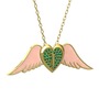 Yeşil kuvars 18 ayar altın kolye (Pastel pembe mineli, 40 cm gümüş rolo zincir)