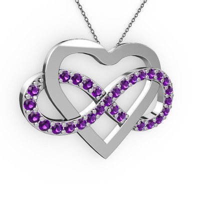 Ametist 8 ayar beyaz altın kolye (40 cm gümüş rolo zincir)
