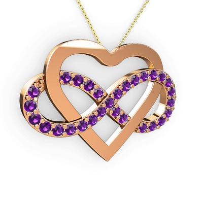 Ametist 8 ayar rose altın kolye (40 cm altın rolo zincir)