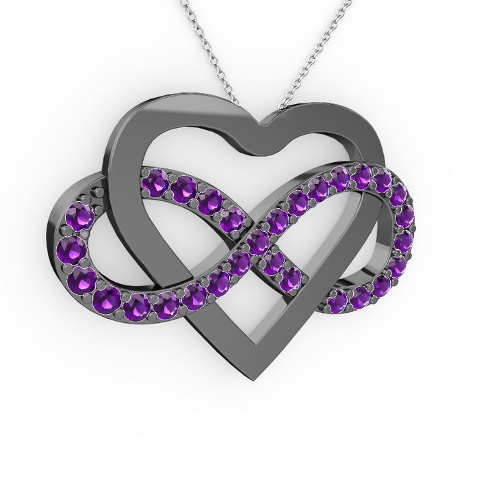 Ametist 925 ayar siyah rodyum kaplama gümüş kolye (40 cm gümüş rolo zincir)