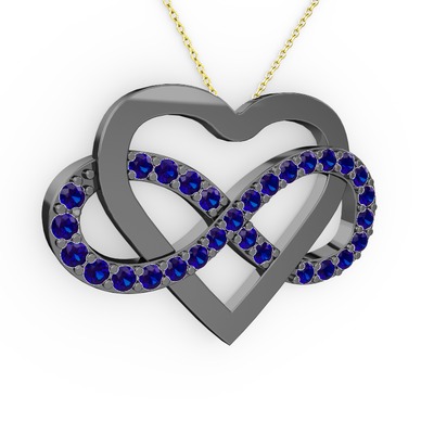 Lab safir 925 ayar siyah rodyum kaplama gümüş kolye (40 cm altın rolo zincir)