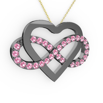 Pembe kuvars 925 ayar siyah rodyum kaplama gümüş kolye (40 cm altın rolo zincir)