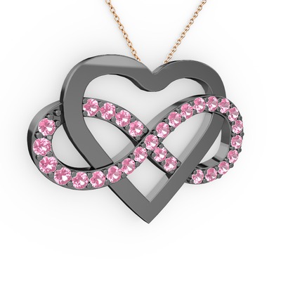 Pembe kuvars 925 ayar siyah rodyum kaplama gümüş kolye (40 cm rose altın rolo zincir)
