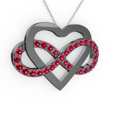 Rodolit garnet 925 ayar siyah rodyum kaplama gümüş kolye (40 cm beyaz altın rolo zincir)
