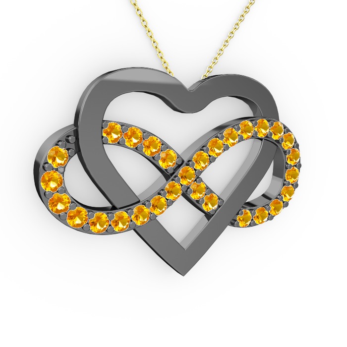 Sitrin 925 ayar siyah rodyum kaplama gümüş kolye (40 cm altın rolo zincir)