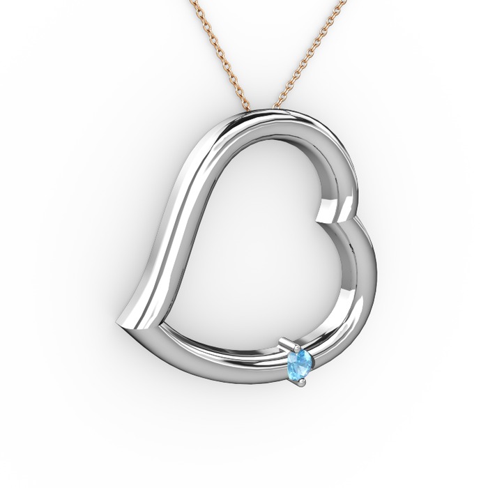 Akuamarin 8 ayar beyaz altın kolye (40 cm rose altın rolo zincir)
