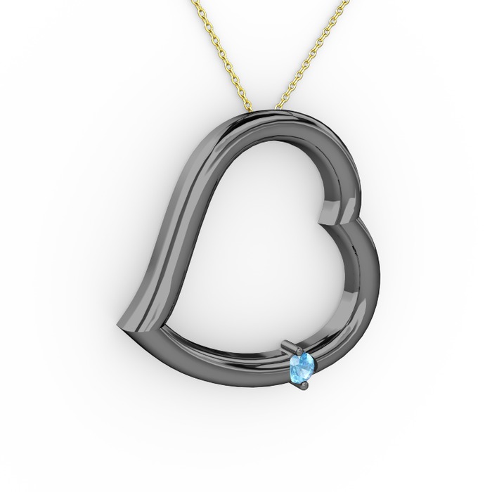 Akuamarin 925 ayar siyah rodyum kaplama gümüş kolye (40 cm altın rolo zincir)