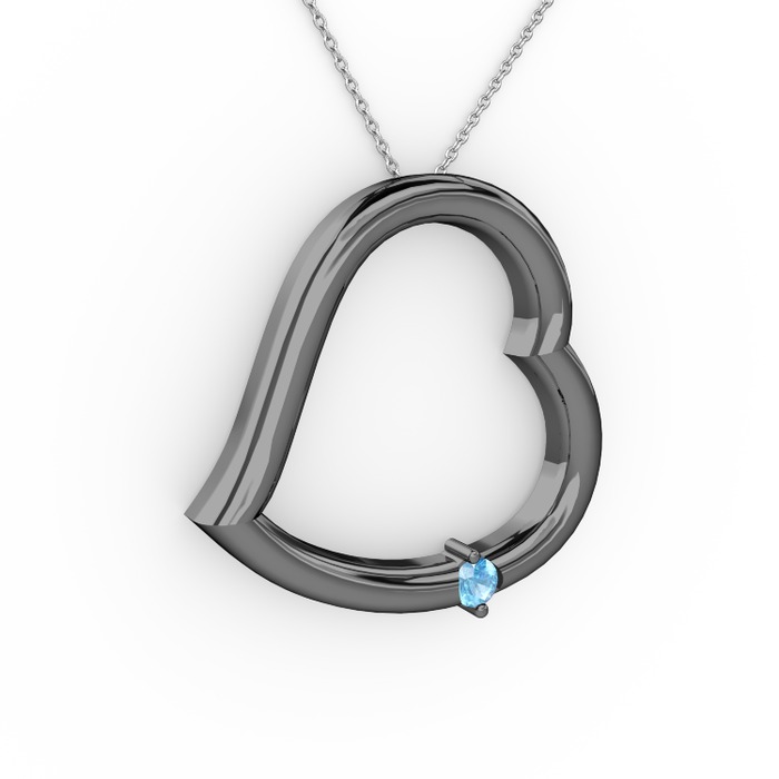 Akuamarin 925 ayar siyah rodyum kaplama gümüş kolye (40 cm beyaz altın rolo zincir)