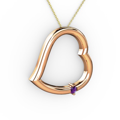 Ametist 14 ayar rose altın kolye (40 cm gümüş rolo zincir)