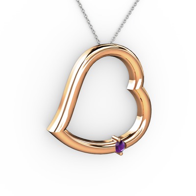 Ametist 8 ayar rose altın kolye (40 cm gümüş rolo zincir)