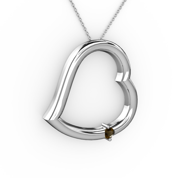 Dumanlı kuvars 18 ayar beyaz altın kolye (40 cm gümüş rolo zincir)