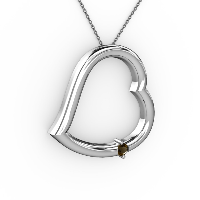 Dumanlı kuvars 18 ayar beyaz altın kolye (40 cm gümüş rolo zincir)