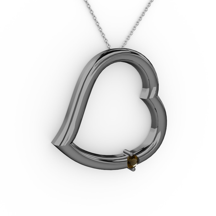 Dumanlı kuvars 925 ayar siyah rodyum kaplama gümüş kolye (40 cm gümüş rolo zincir)