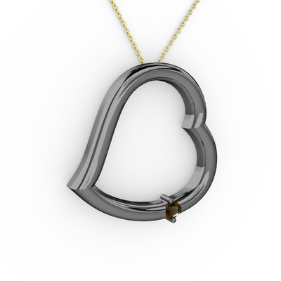 Dumanlı kuvars 925 ayar siyah rodyum kaplama gümüş kolye (40 cm gümüş rolo zincir)