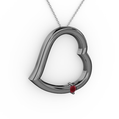 Kök yakut 925 ayar siyah rodyum kaplama gümüş kolye (40 cm beyaz altın rolo zincir)