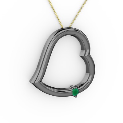 Kök zümrüt 925 ayar siyah rodyum kaplama gümüş kolye (40 cm altın rolo zincir)