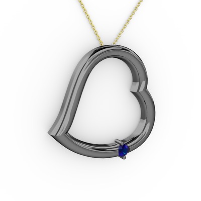 Lab safir 925 ayar siyah rodyum kaplama gümüş kolye (40 cm altın rolo zincir)