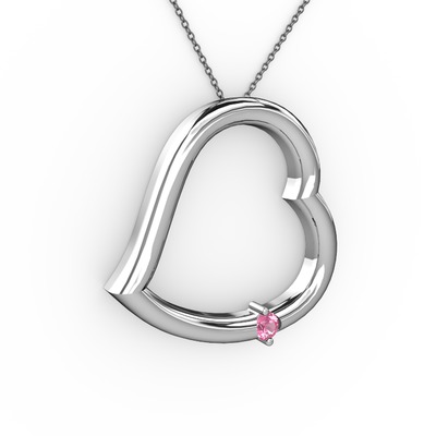Pembe kuvars 8 ayar beyaz altın kolye (40 cm gümüş rolo zincir)