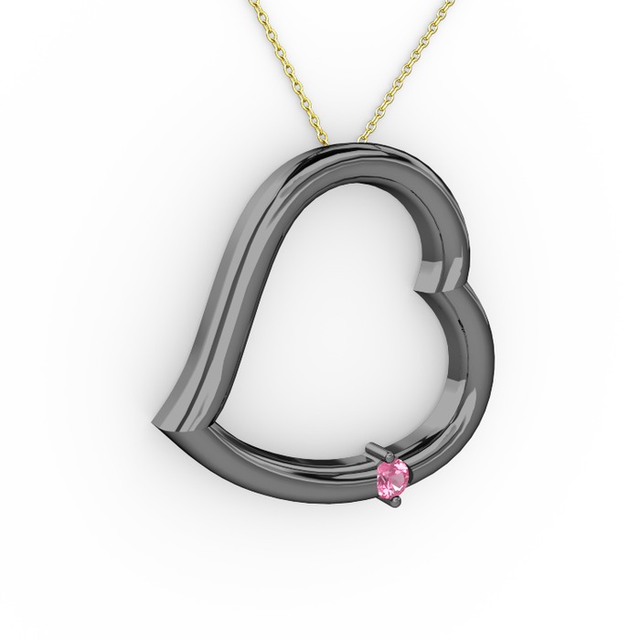 Pembe kuvars 925 ayar siyah rodyum kaplama gümüş kolye (40 cm gümüş rolo zincir)