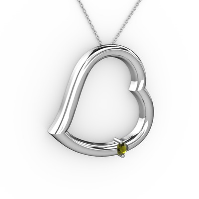 Peridot 14 ayar beyaz altın kolye (40 cm beyaz altın rolo zincir)