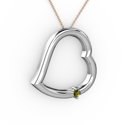 Peridot 18 ayar beyaz altın kolye (40 cm rose altın rolo zincir)