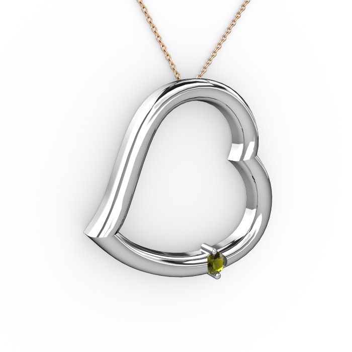 Peridot 8 ayar beyaz altın kolye (40 cm rose altın rolo zincir)