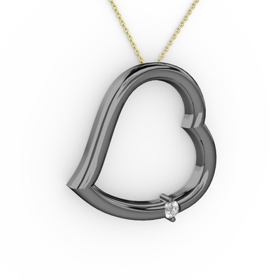 Pırlanta 925 ayar siyah rodyum kaplama gümüş kolye (0.036 karat, 40 cm gümüş rolo zincir)
