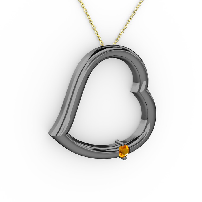 Sitrin 925 ayar siyah rodyum kaplama gümüş kolye (40 cm altın rolo zincir)