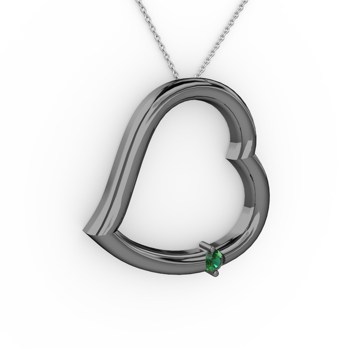 Yeşil kuvars 925 ayar siyah rodyum kaplama gümüş kolye (40 cm gümüş rolo zincir)