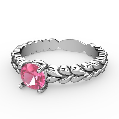Pembe kuvars 8 ayar beyaz altın yüzük