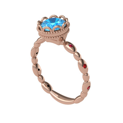 Akuamarin ve garnet 925 ayar rose altın kaplama gümüş yüzük
