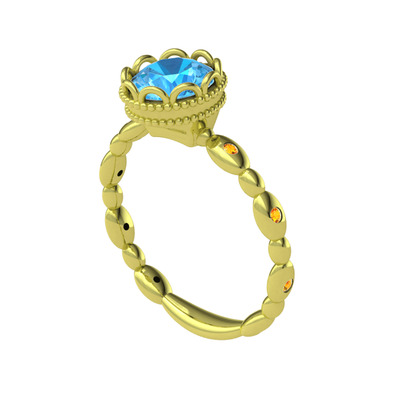 Akuamarin ve sitrin 8 ayar altın yüzük