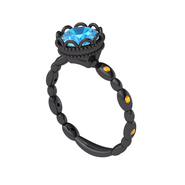Akuamarin ve sitrin 925 ayar siyah rodyum kaplama gümüş yüzük