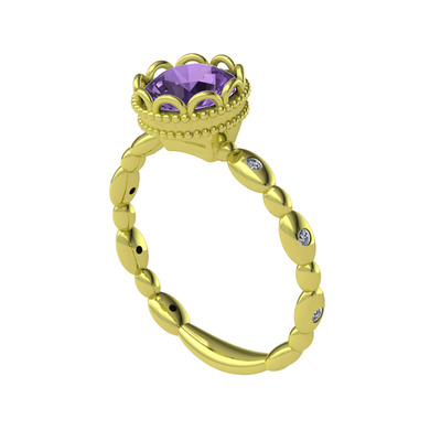 Ametist ve pırlanta 14 ayar altın yüzük (0.054 karat)