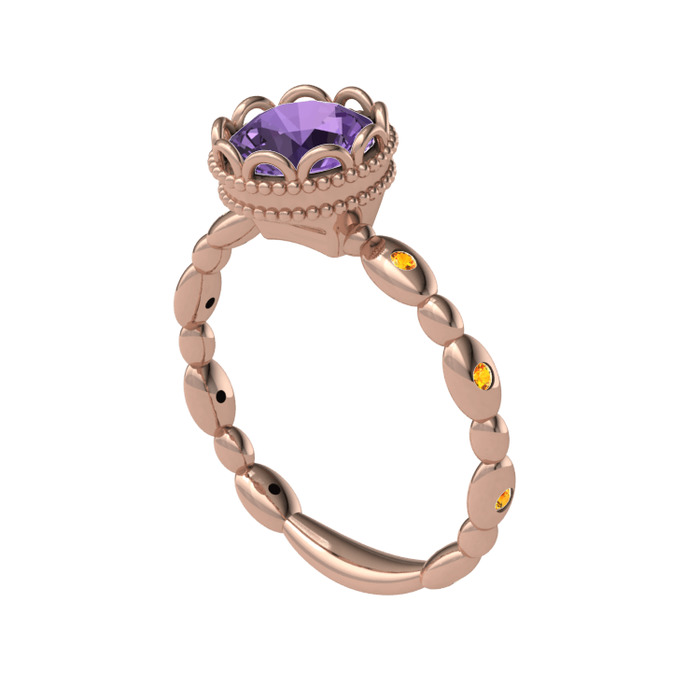 Ametist ve sitrin 8 ayar rose altın yüzük