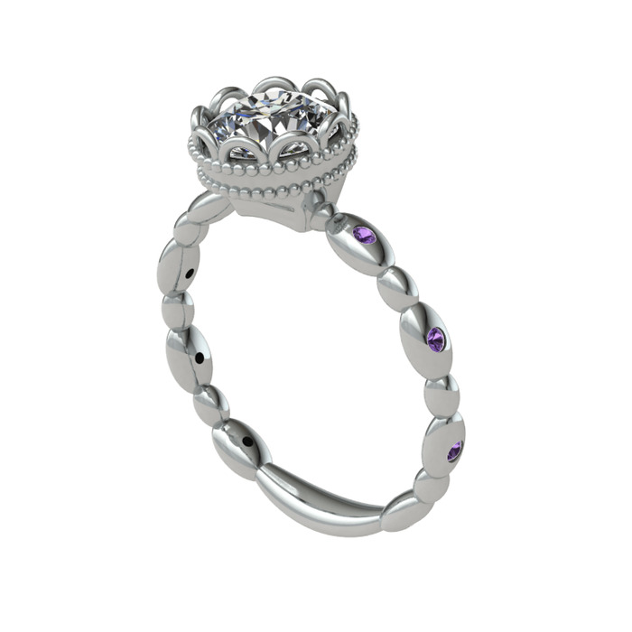 Beyaz zirkon ve ametist 8 ayar beyaz altın yüzük