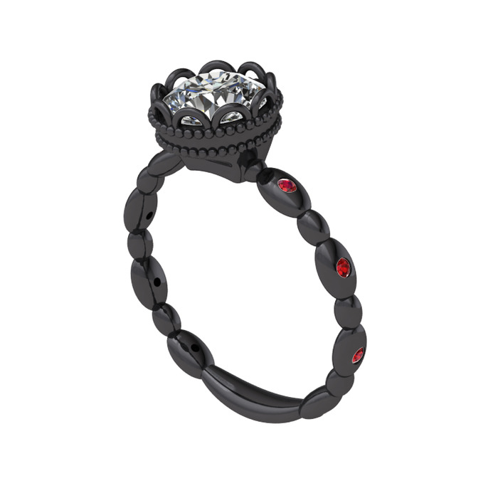 Beyaz zirkon ve garnet 925 ayar siyah rodyum kaplama gümüş yüzük