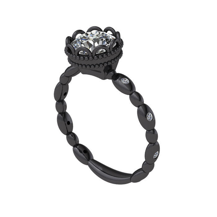 Beyaz zirkon ve pırlanta 925 ayar siyah rodyum kaplama gümüş yüzük (0.054 karat)