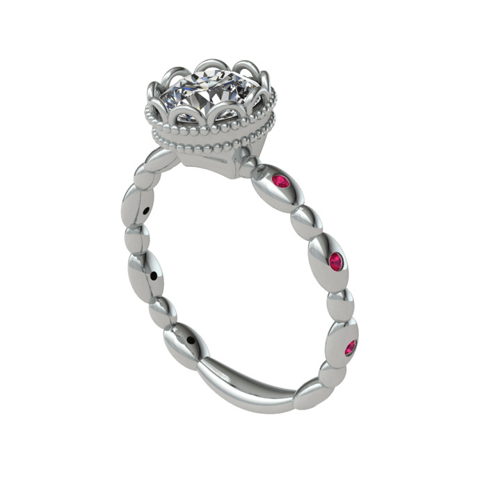 Beyaz zirkon ve rodolit garnet 18 ayar beyaz altın yüzük