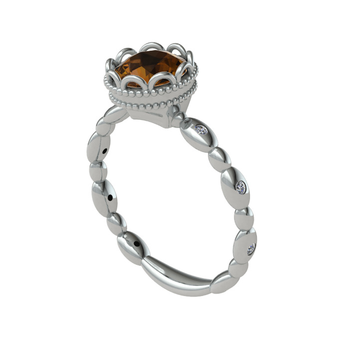 Dumanlı kuvars ve pırlanta 18 ayar beyaz altın yüzük (0.054 karat)